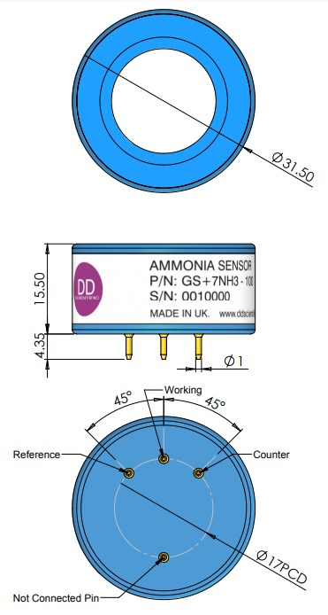 Электрохимический сенсор GS+7NH3-100 DD предназначен для измерения Аммиака NH3 в составе стационарных и портативных газоанализаторов.