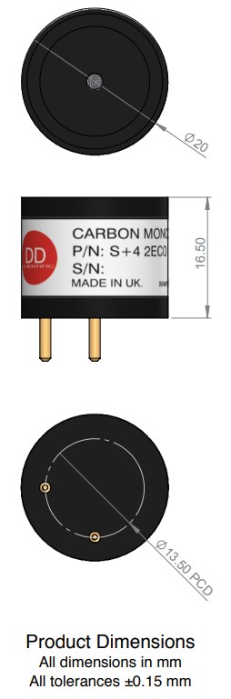 Электрохимический сенсор S+4 2ECO DD Scientific это недорогой 2-электродный датчик Угарного газа CO с длительным сроком службы, предназначенный для использования в бытовых целях./пожарные извещатели CO, вентиляционные установки (подземные автостоянки)