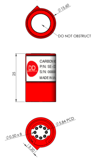 Габаритные размеры сенсора SE+CO DD Scientific: