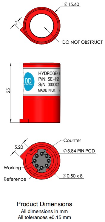 Габаритные размеры сенсора SE+H2S DD Scientific