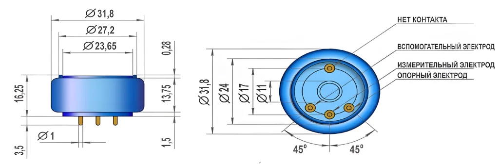 | Напряжение смещения | +300 мВ (время стабилизации 12 часов) |