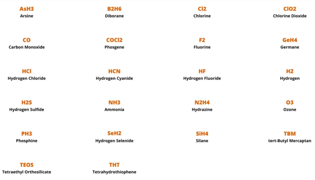 КАКИЕ ГАЗЫ МОГУТ ОБНАРУЖИВАТЬ СТАНДАРТНЫЕ ДАТЧИКИ SENSORIX?
