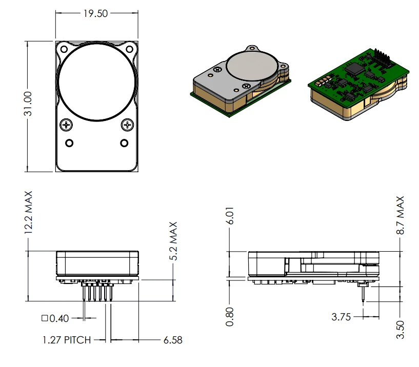 Габаритные размеры сенсора CozIR-LP Gas Sensing Solutions (GSS)