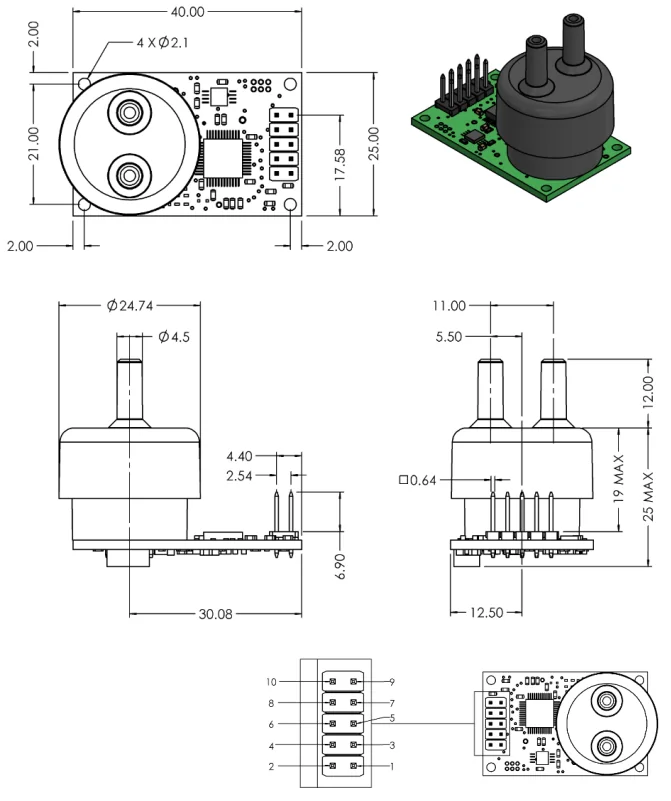 Габаритные размеры сенсора SprintIR®-W CO2