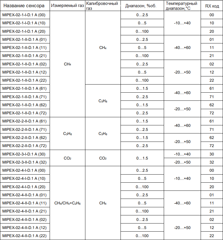Модификации сенсоров MIPEX-02