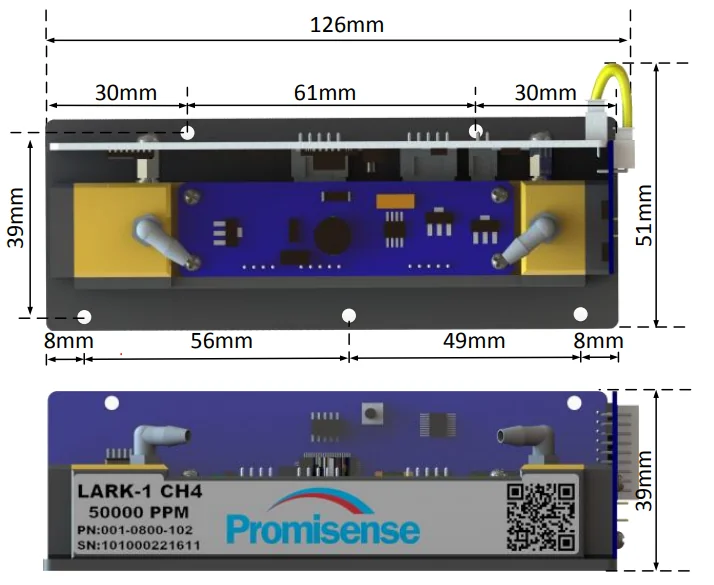 Габаритные размеры сенсора LARK-1 CH4 50000PPM Promisense