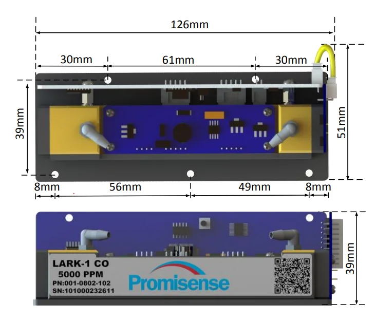 Габаритные размеры сенсора LARK-1 CO 5000PPM Promisense