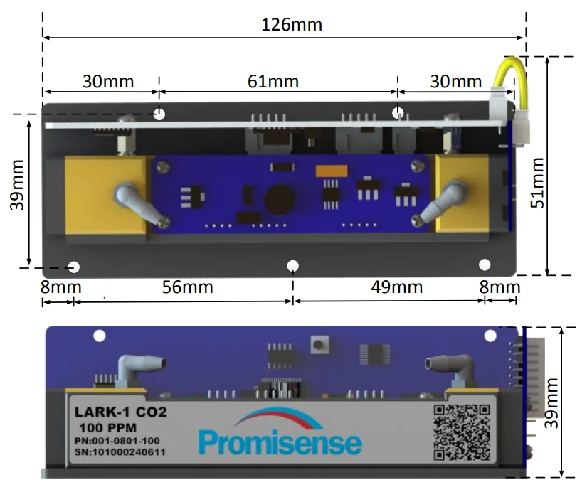 Габаритные размеры сенсора LARK-1 CO2 100PPM Promisense