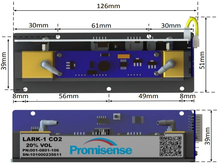 Габаритные размеры сенсора LARK-1 CO2 20%VOL Promisense