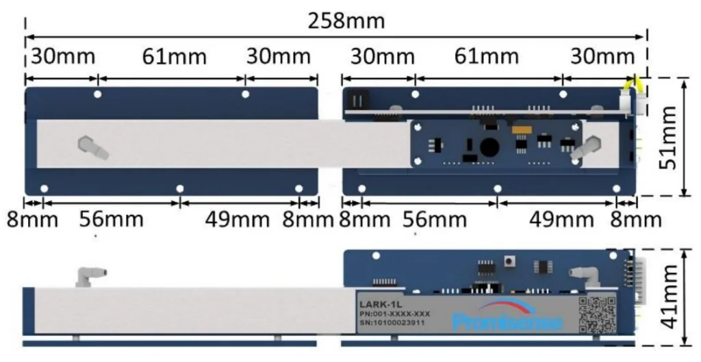 Габаритные размеры сенсора LARK-1LMCT SO2F2 100PPM Promisense