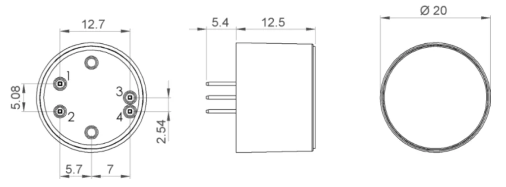 Габаритные размеры сенсора LuminOx Optical Oxygen Sensors LOX-02
