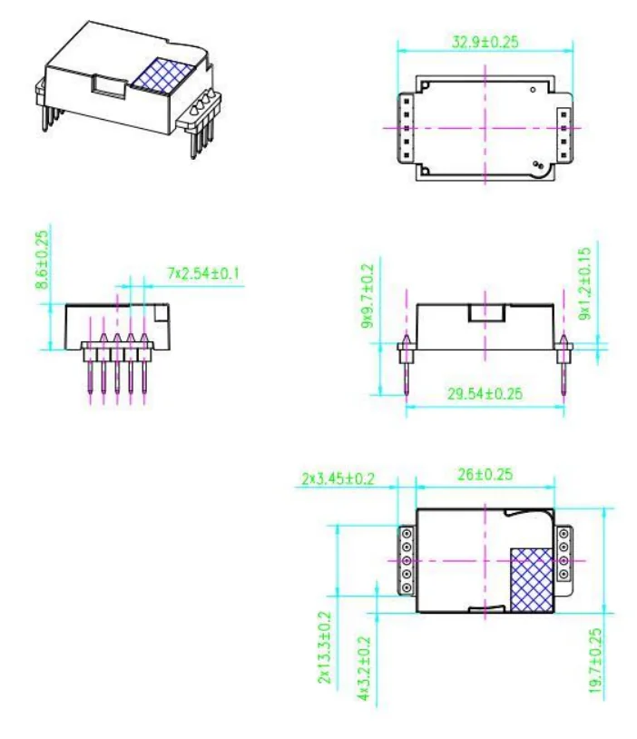Габаритные размеры сенсора MH-Z19C Winsen